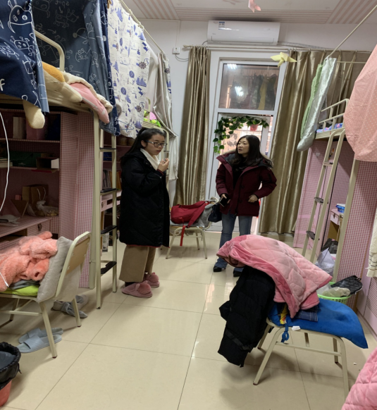 下午,在员工科副科长彭丽冰带领下辅导员进行了寒假寝室安全检查,重点检查了实习寝室的相关安全问题,并对同学进行安全宣讲。提醒还未回家的同学早日回家,注意路上安全。希望同学们能合理安排学习、运动、生活,度过一个快乐、安全的寒假!