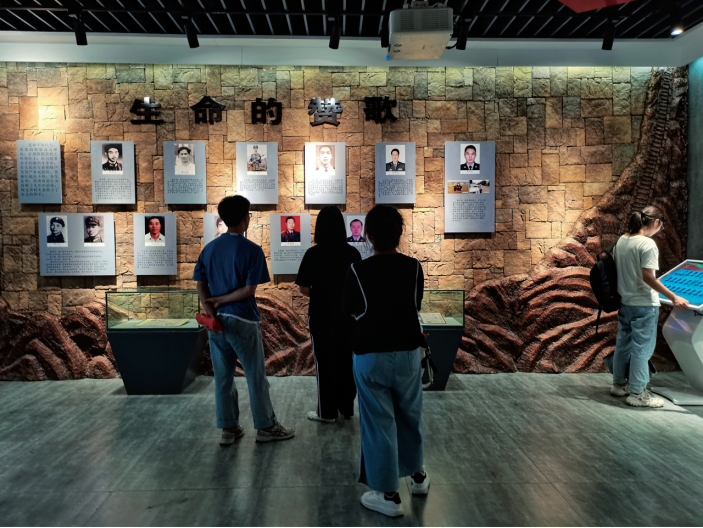 烈士纪念馆内,陈列着一个个曾经鲜活的生命和他们的英雄事迹,他们或为了民族国家的独立而牺牲于抗日战争时期;或为了心中美好的新中国的建立而牺牲于解放战争;或为了经济建设、国家工业的发展献出生命;或为了保卫人民生命财产安全倒在了自己的工作岗位。他们大多数人牺牲的时候才二三十岁,跟我们一般大的年纪,有大好的年华等着他们,而他们却义无反顾投入革命,投入新中国的建设中,不畏艰险,不怕牺牲,不求回报,令人惋惜又让人钦佩。正如纪念馆结束语写的那样“时光荏苒,抹不去那些难以忘却的历史;挥不掉刻骨铭心的印记。烈士们已经离我们远去,解读他们,只能通过这一张张相片、一行行文字、一件件遗物、一座座碑碣。我们在烈士像前鞠躬,充满虔诚的崇敬和景仰;我们在烈士墓前献花,寄托着无限的深情和缅怀。”