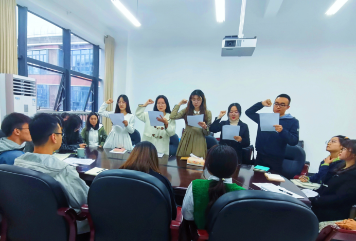 会议开始,5名发展对象从入党动机、志向、自我认识及剖析、未来发展规划等几个方面进行思想汇报,再由全体党员进行投票表决,最终全体党员一致同意吸收5名同志为预备党员。“我志愿加入中国共产党,拥护党的纲领,遵守党的章程......”五名中共预备党员高举右拳,庄严宣誓。马玲书记对五名新预备党员表示祝贺并提出期望,要求五名新党员与其余党员以更高的标准要求自己,加强自身建设,引领身边同学,为群众办实事,相互关心,主动奉献,坚决抵制任何违法乱纪事情,遵守社会公德、个人道德,争做公卫人的先锋榜样。