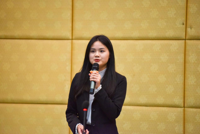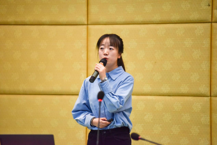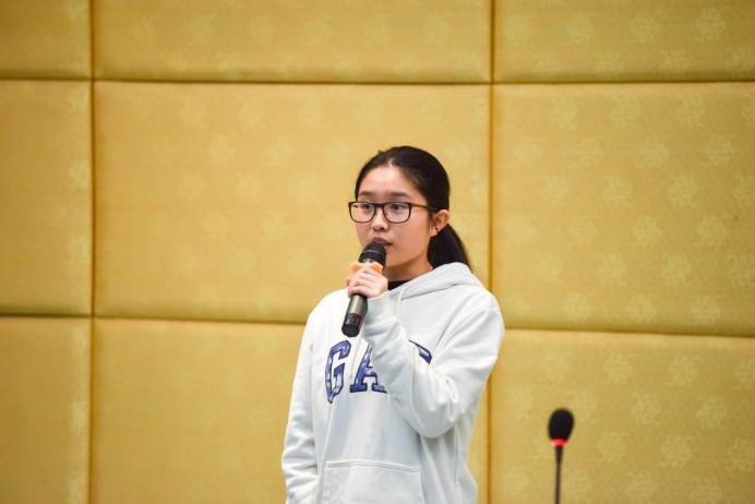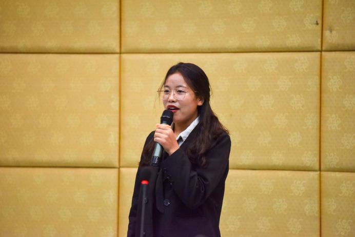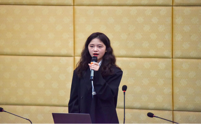 四号选手胡梦婕同学回顾了北京奥运圣火登顶珠峰的瞬间,展现中华民族的智慧和自强不息的民族精神。