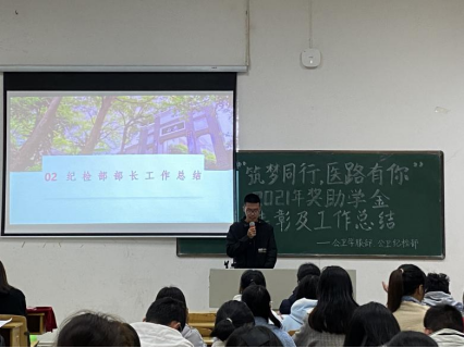 为进一步强化资助育人效果,11月8日晚,bevictor伟德官网在海川楼505教室召开“筑梦同行,医路有你”2020-2021学年bevictor伟德官网奖助工作总结及表彰大会。会议由纪检部岳楷棱同学主持,员工科辅导员仲菊芳老师以及各班班委、员工代表等50余人参加。