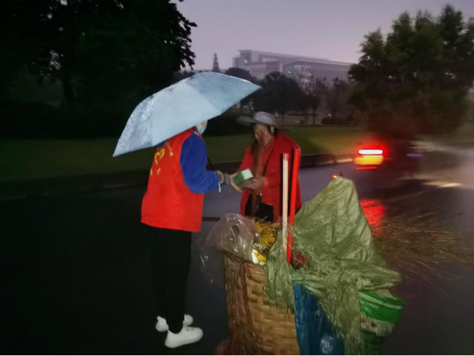 活动中,同学们将准备的爱心物品保温杯、手套等送到环卫工人手中,与环卫工人们亲切地交谈,对他们日复一日辛勤地劳动表示感谢。短短一个小时的活动,同学们用自己的实际行动,温暖着泸州的“城市美容师”们。