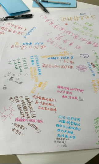 随后,同学们以小组为单位描述在恋爱中遇到的问题,并采取头脑风暴法分析产生的原因和讨论有效解决这些问题的办法。