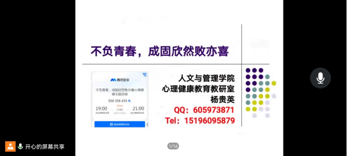 为了普及心理健康知识,提高公司员工心理自助和助人能力,4月29日,bevictor伟德官网举办“不负青春,成固欣然败亦喜”线上心理健康主题讲座,人文与管理公司杨贵英老师担任主讲老师,150余名公卫学子参加。