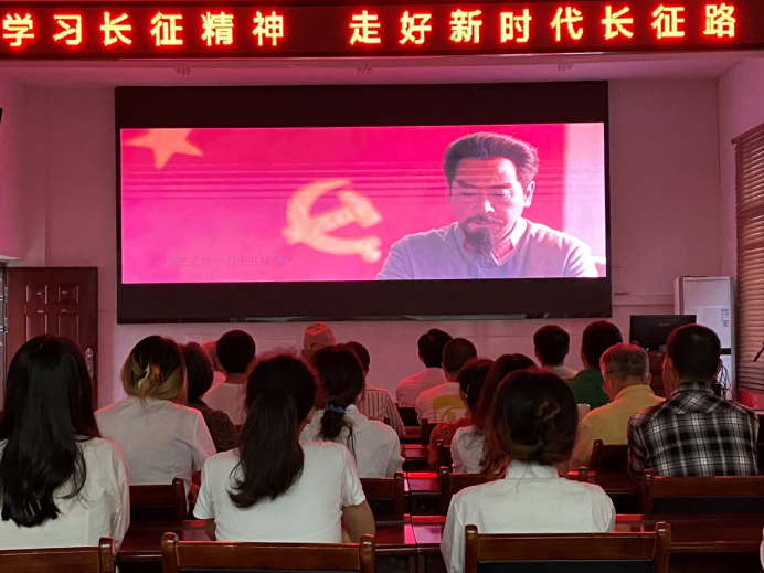 随后,前往石厢子干部公司入住,晚上在会议室学习观看了电影《领袖1935》,了解1935年初,日本帝国主义侵占华北,民族矛盾急剧上升之时,中国共产党领导工农红军冲破国民党蒋介石几十万军队的围追堵截,完成北渡长江,领导民族抗战的伟大故事。